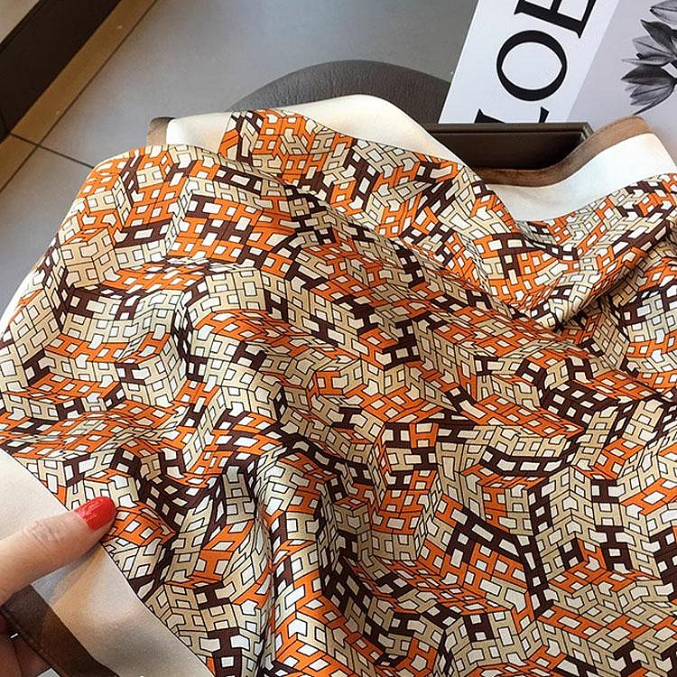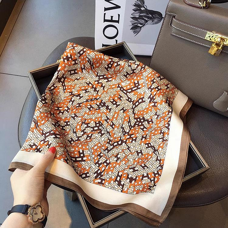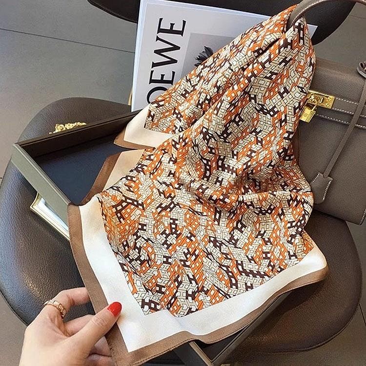100%桑蠶絲H立體字母真絲領巾小方巾披肩