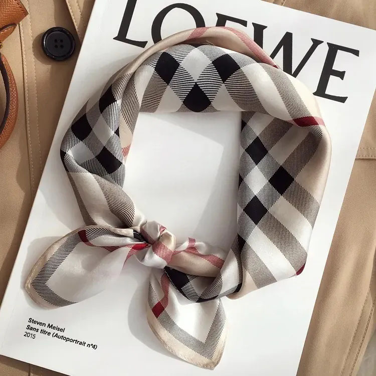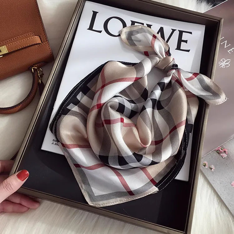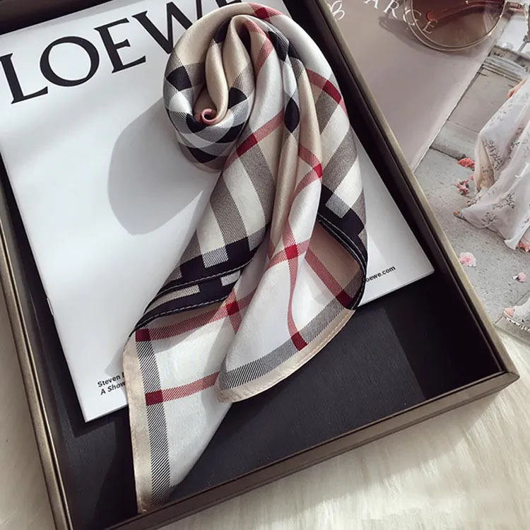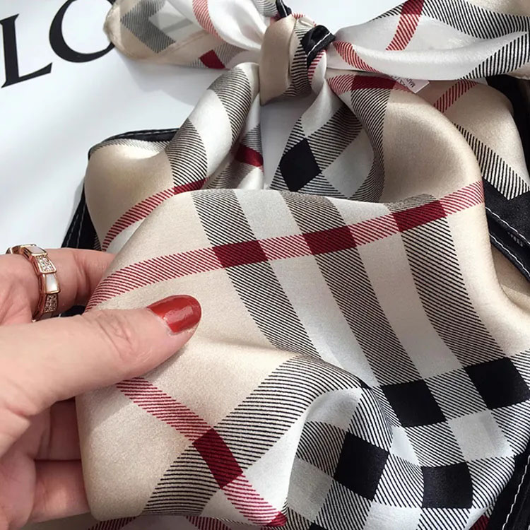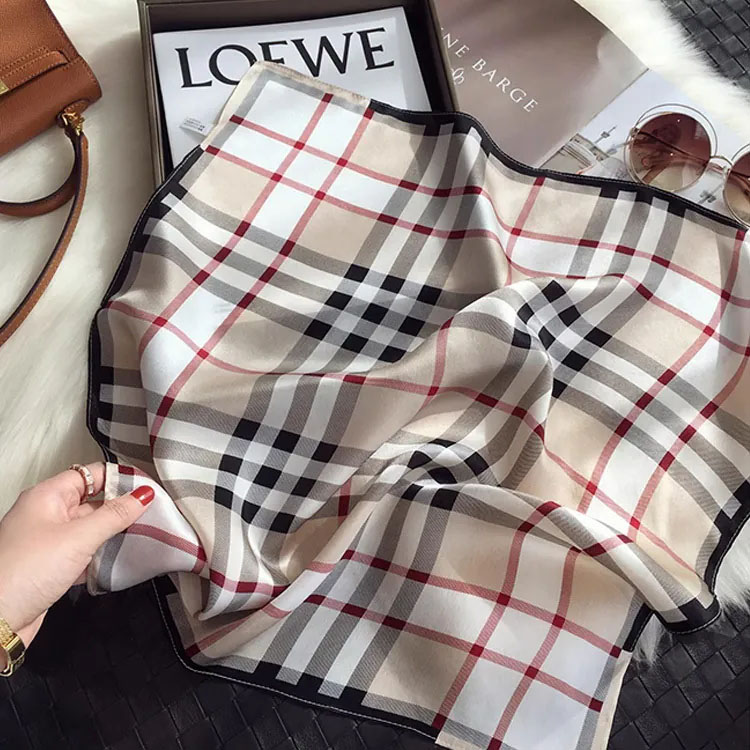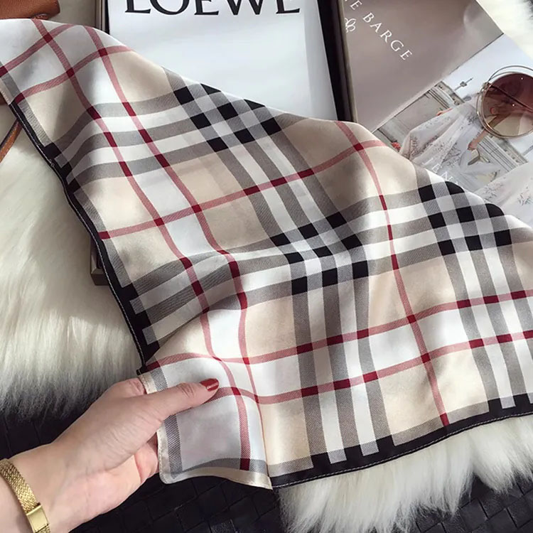 100%桑蠶絲經典格子真絲領巾小方巾披肩