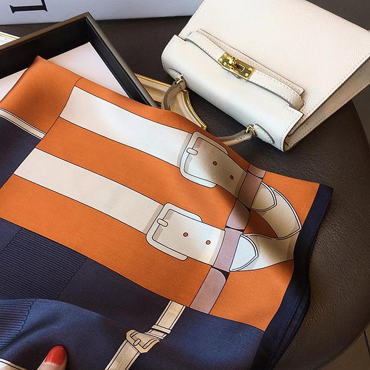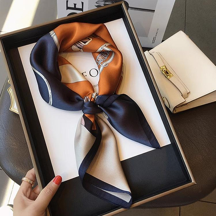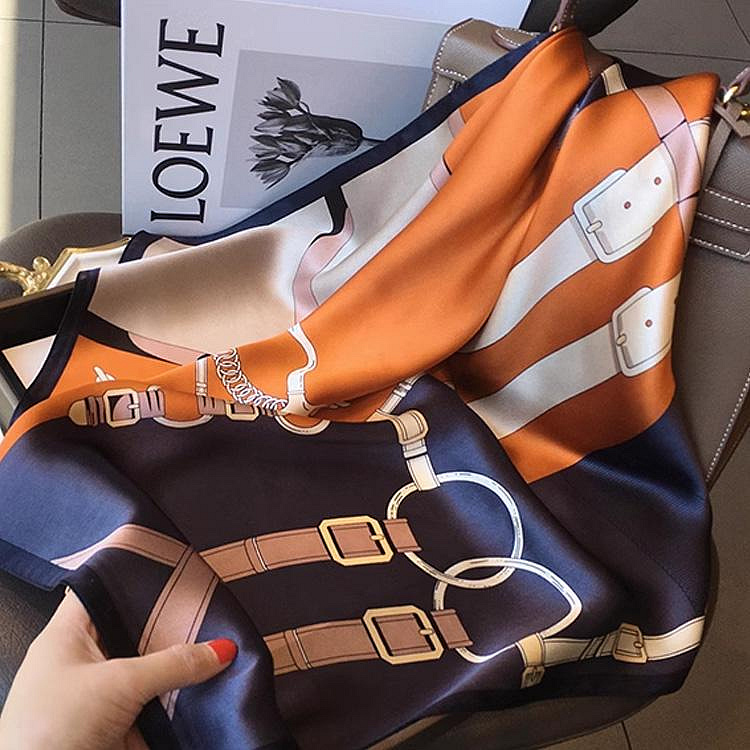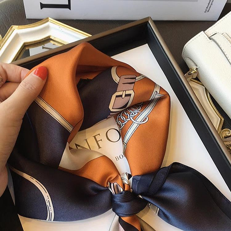 100%桑蠶絲橘色馬鞍真絲領巾小方巾披肩