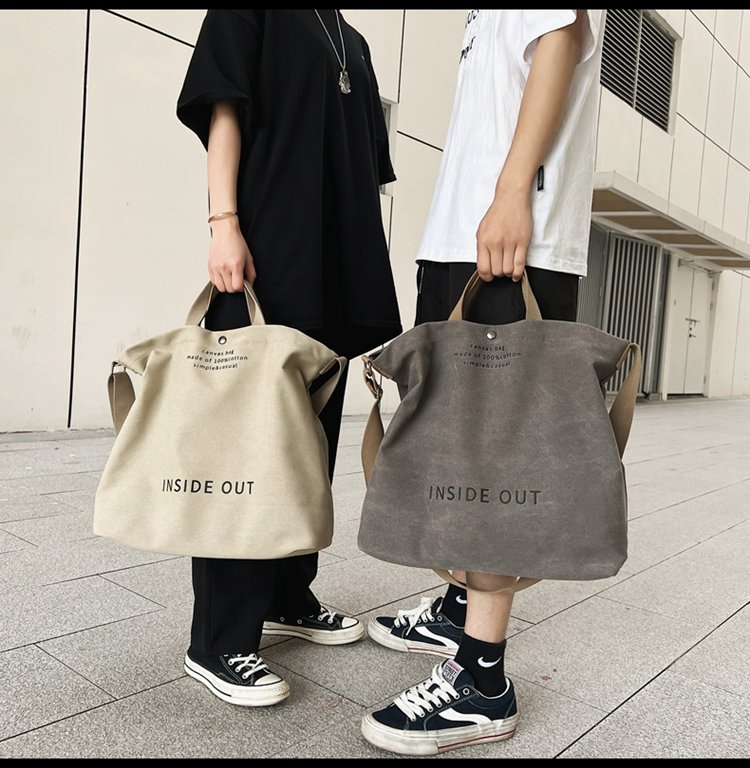 Material/ 材質:帆布Color/顏色:如圖示中性款 情侶款厚實帆布高品質超大容量有內袋..鈕扣無拉鏈工廠來的每批英文字會不同以實物為主哦~..............................................Size/ cm:包長37 高38包厚14重約0.48kg