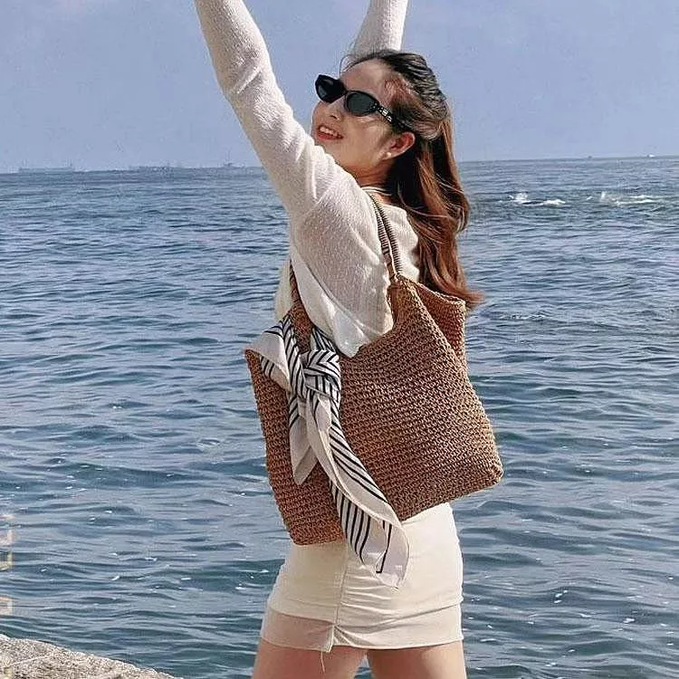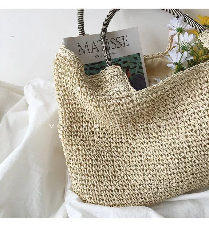 韓版草編包托特包手工編織包度假沙灘包單肩包手提包