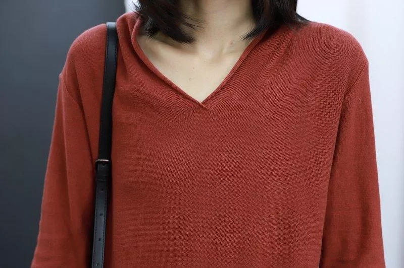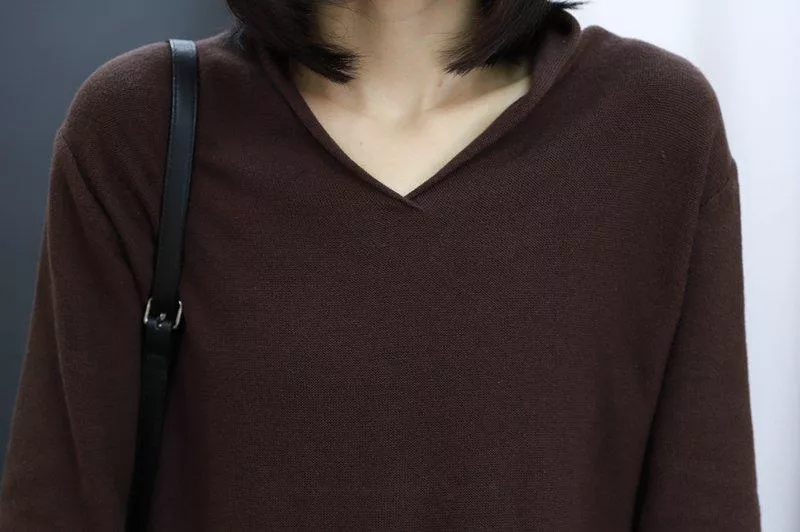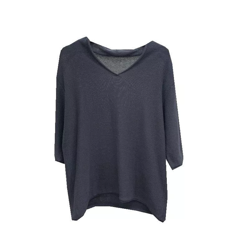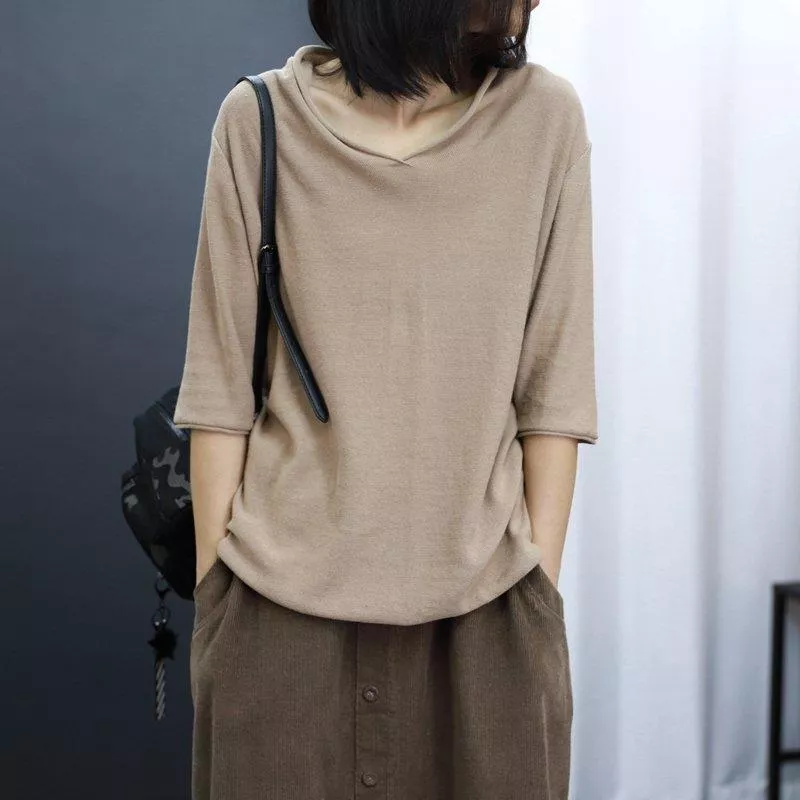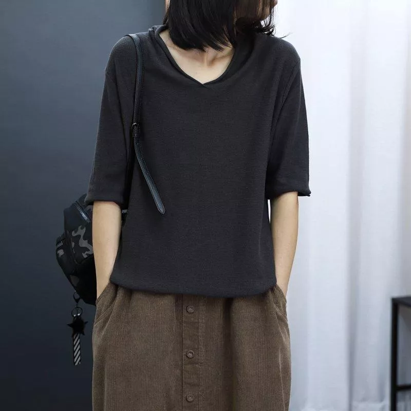 韓版寬鬆五分袖V領套頭針織衫打底上衣