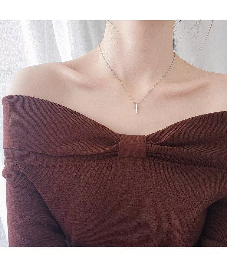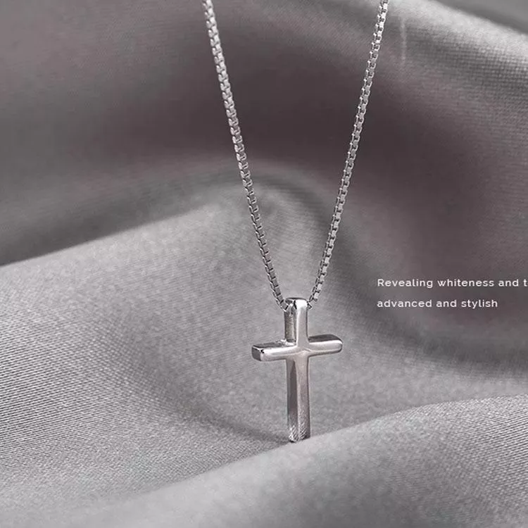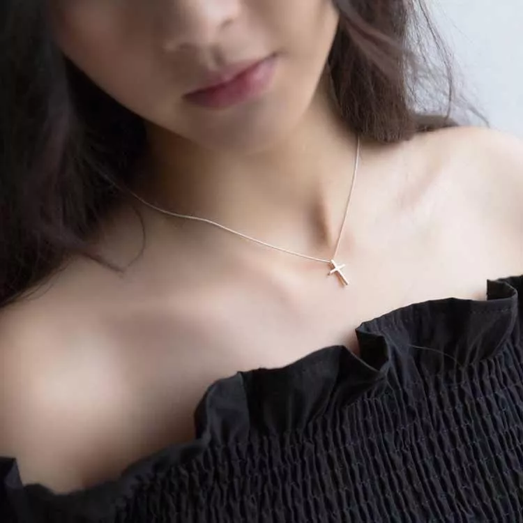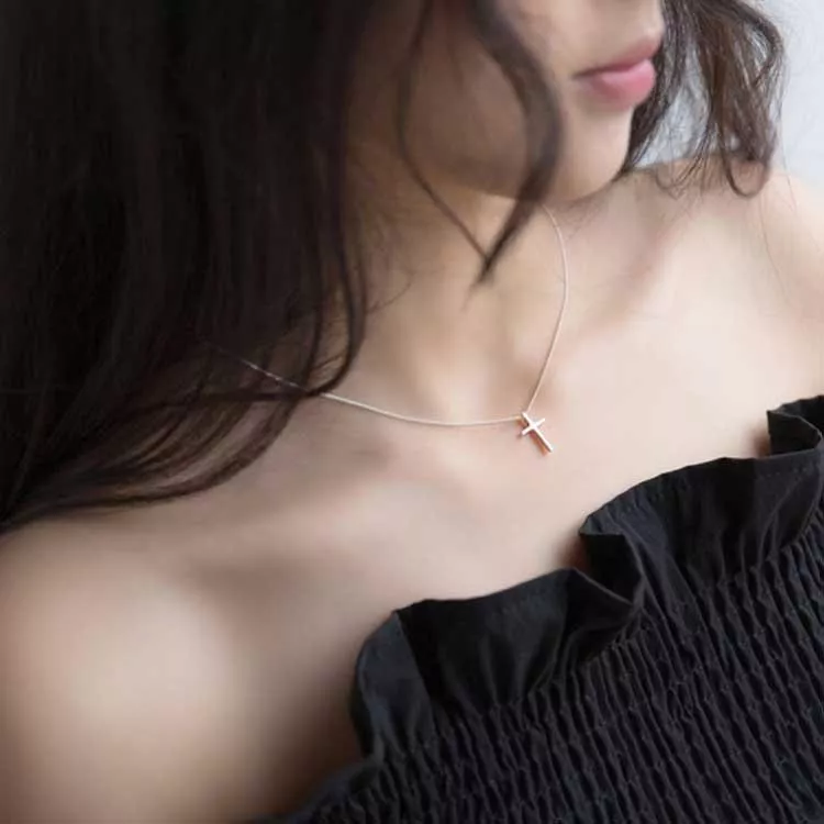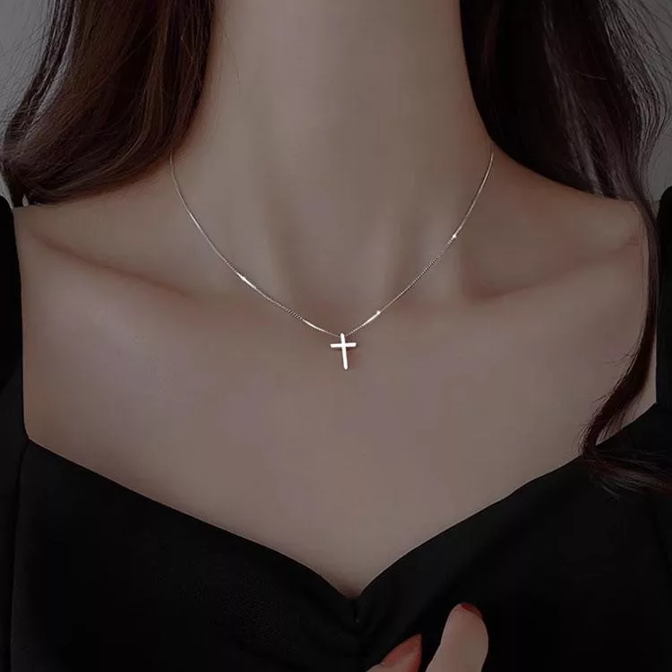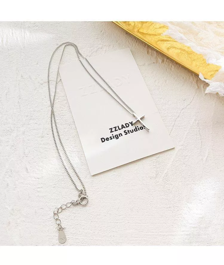 925純銀 鎖骨項鍊 十字架吊墜 時尚迷你個性銀飾 鎖骨鍊