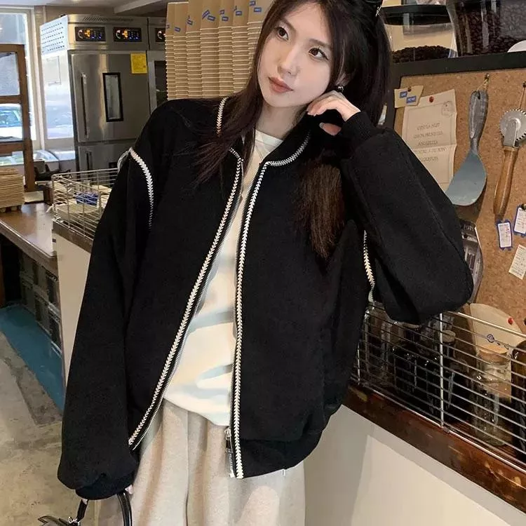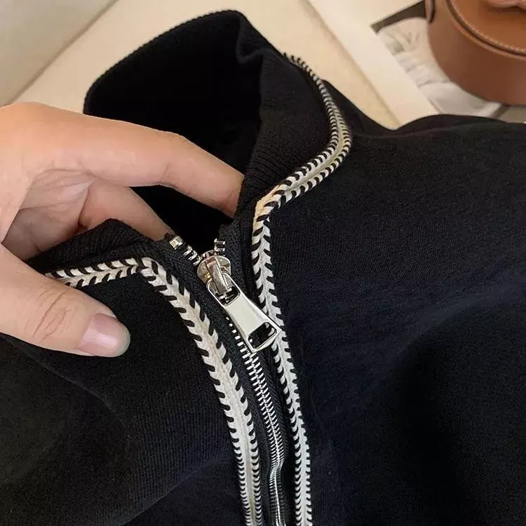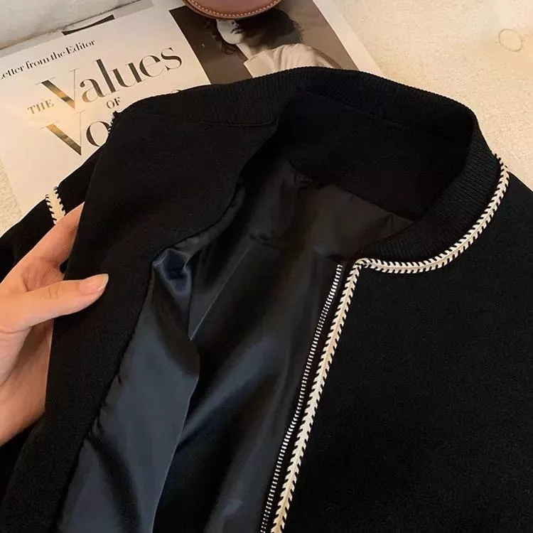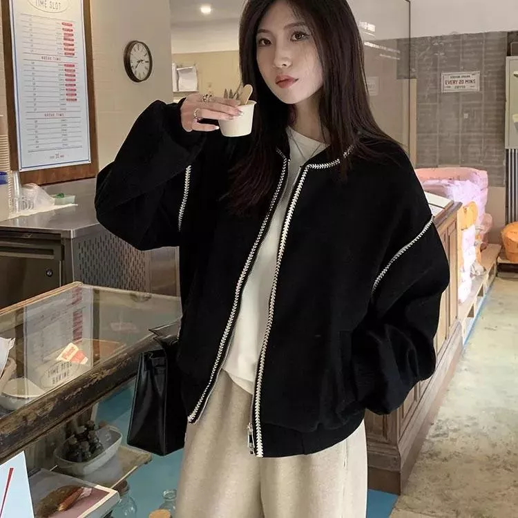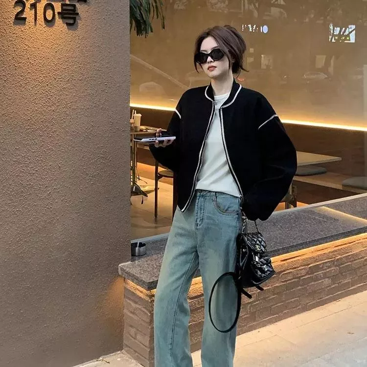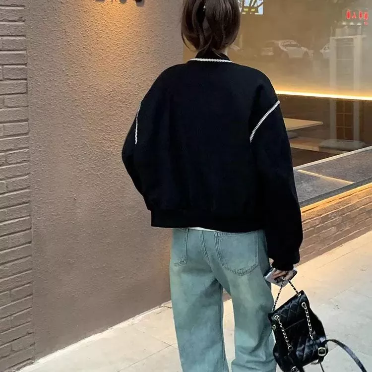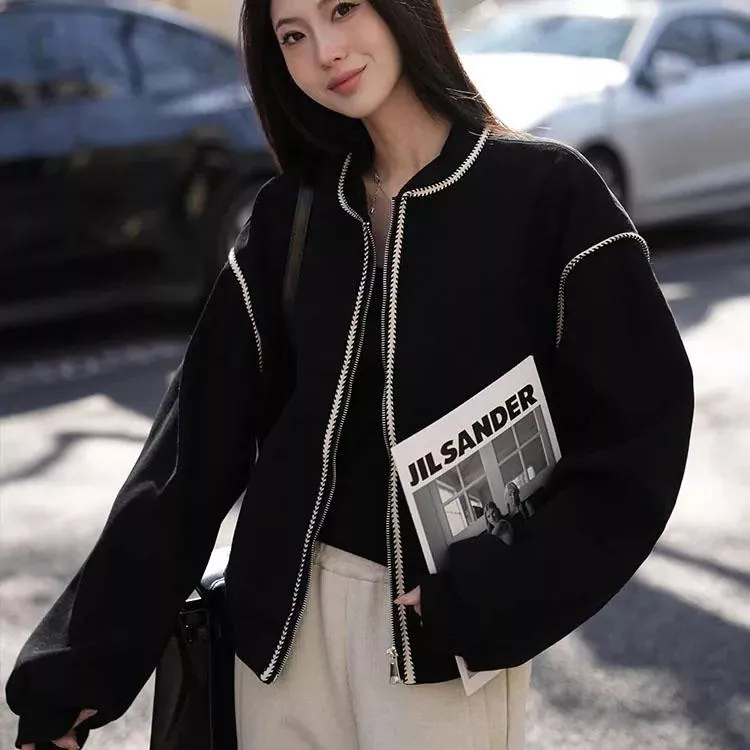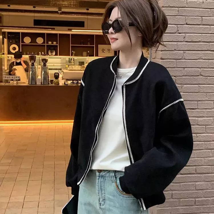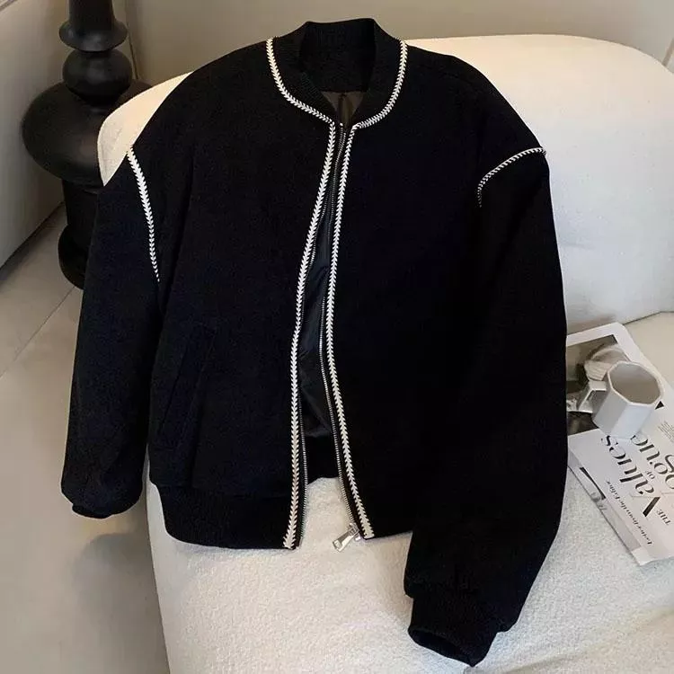 麥穗紋復古休閒短款棒球外套