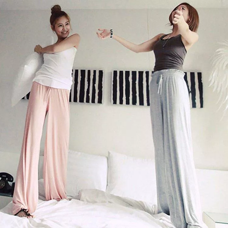 寬鬆大碼寬管闊腿褲莫代爾薄款運動褲瑜伽褲家居褲