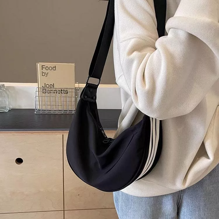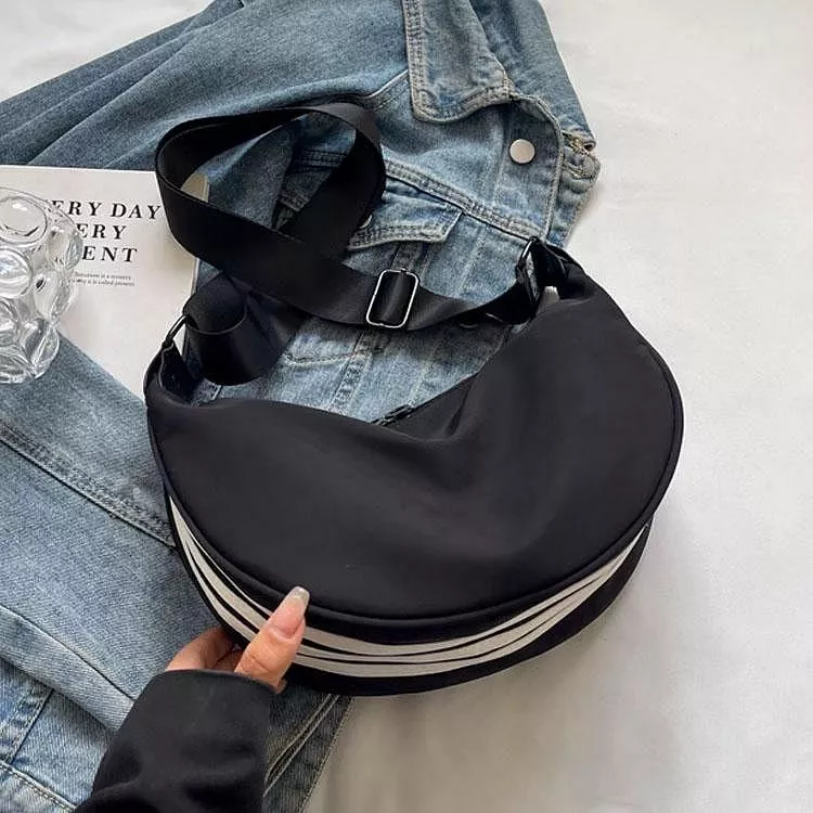 韓版高質感牛皮拼接帆布飯盒包斜背水餃包