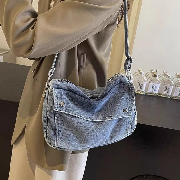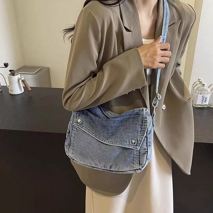 韓版質感牛仔斜背包通勤托特包