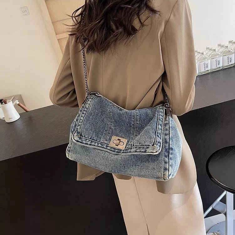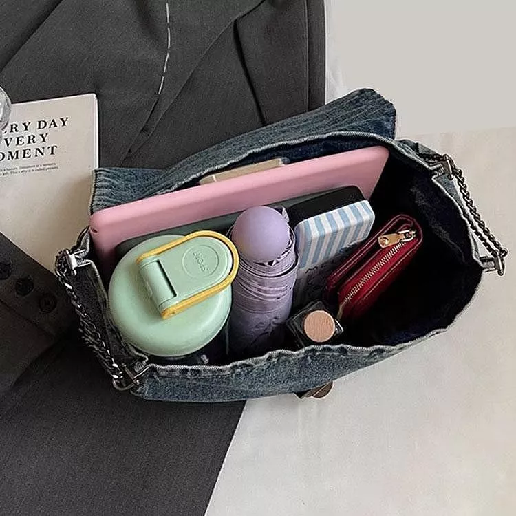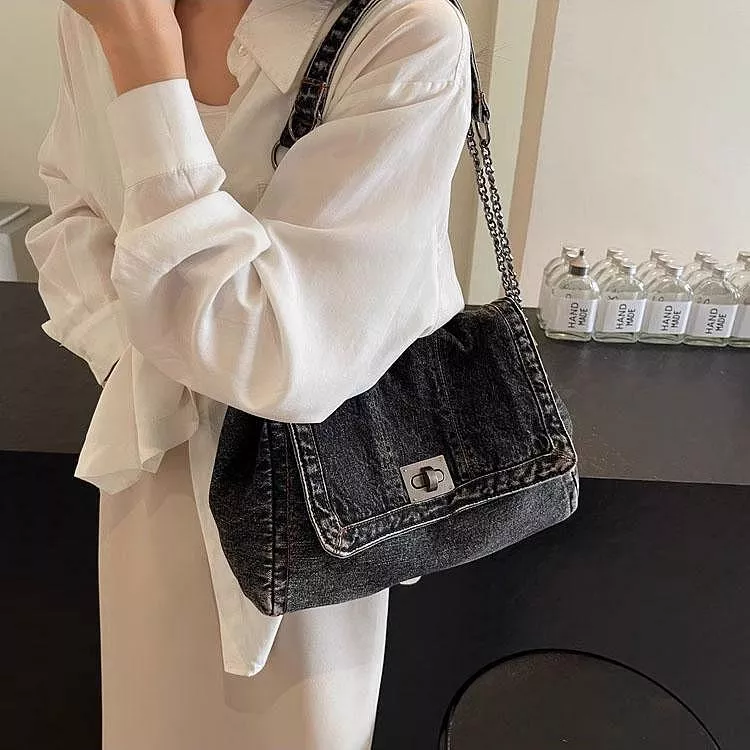 韓版高質感牛皮拼接帆布飯盒包斜背水餃包