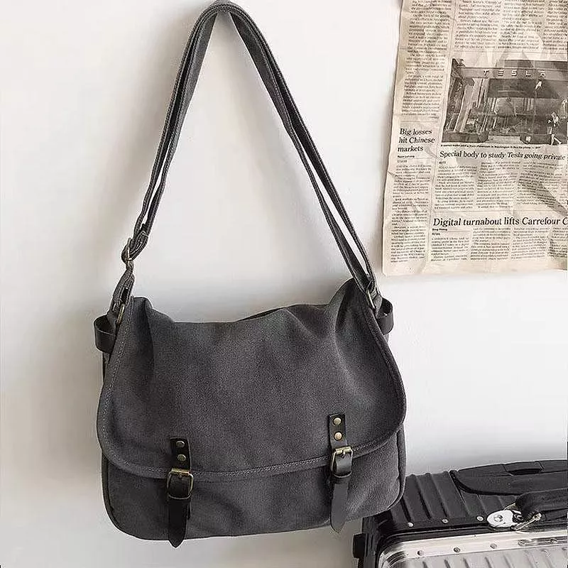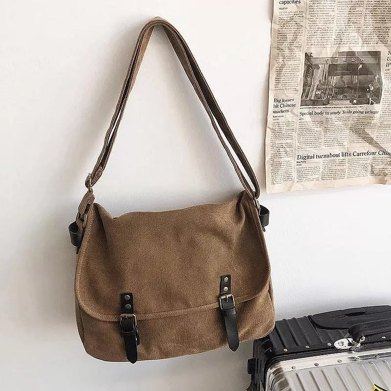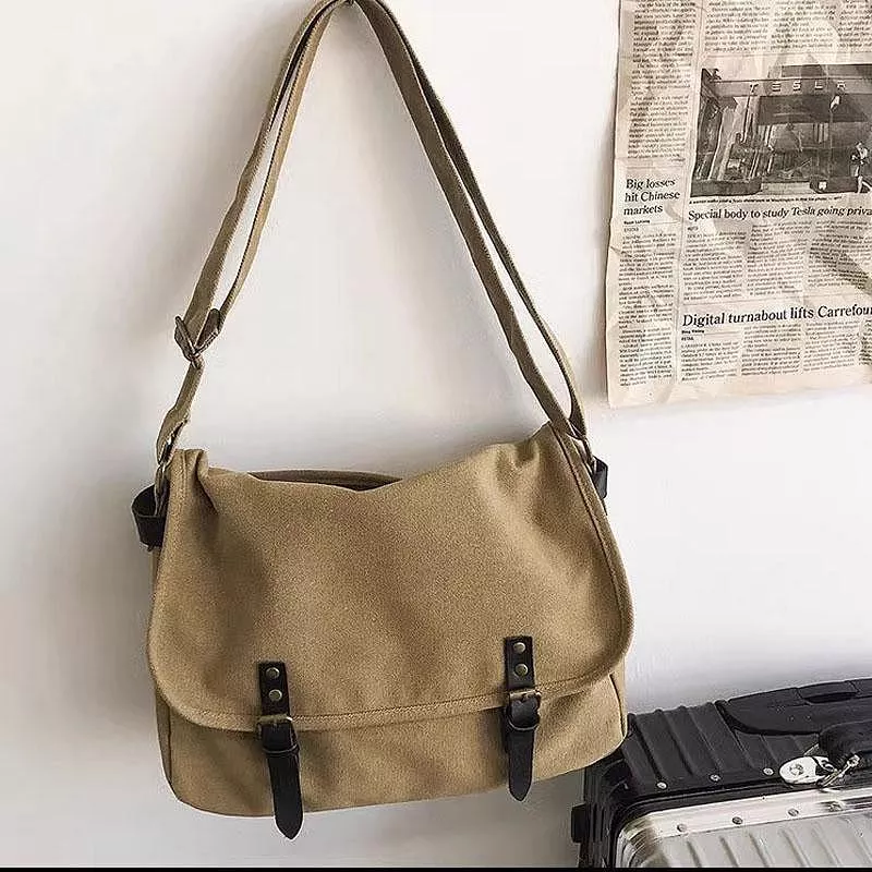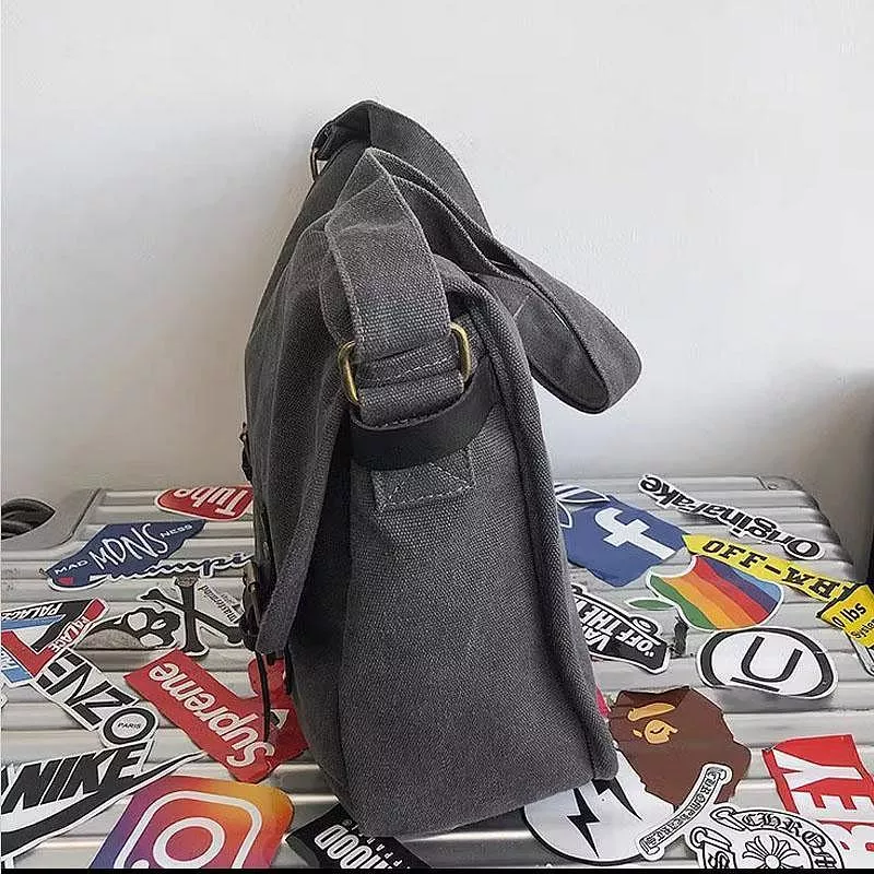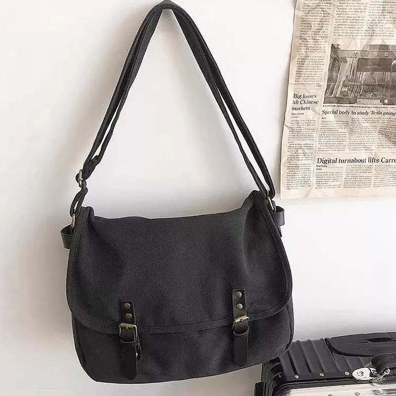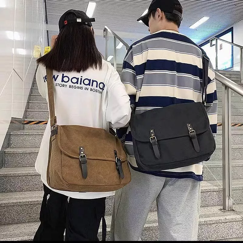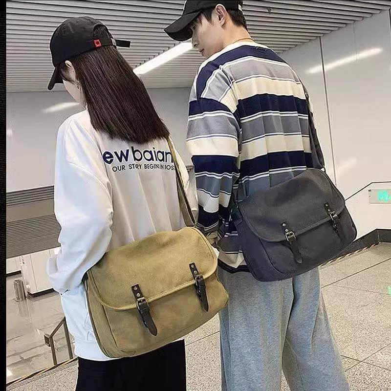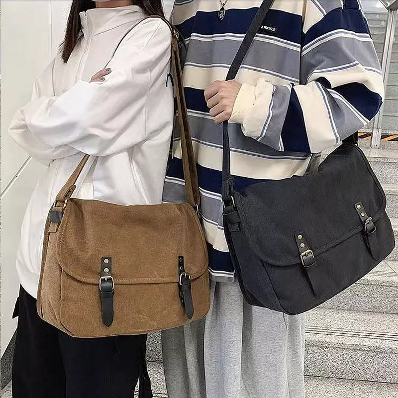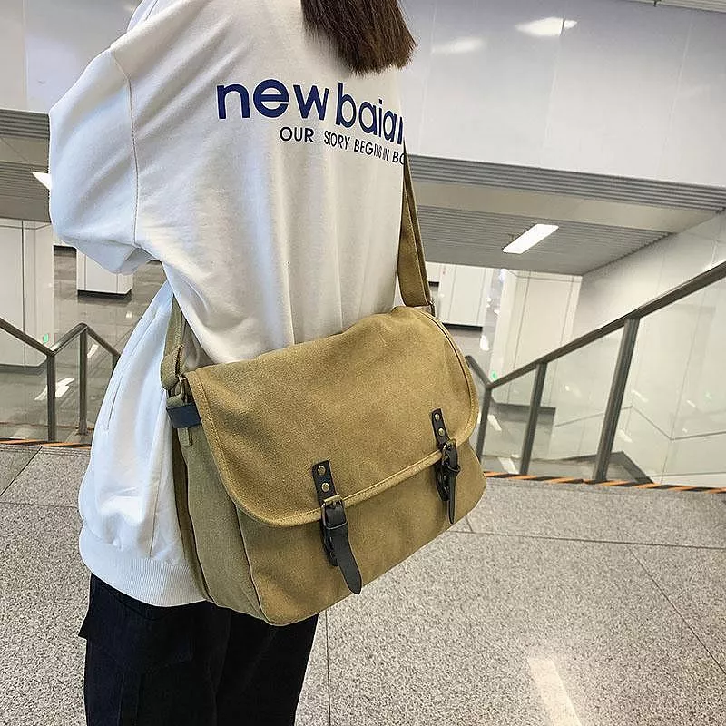 日系休閒水洗帆布斜背包男女通勤手提郵差包