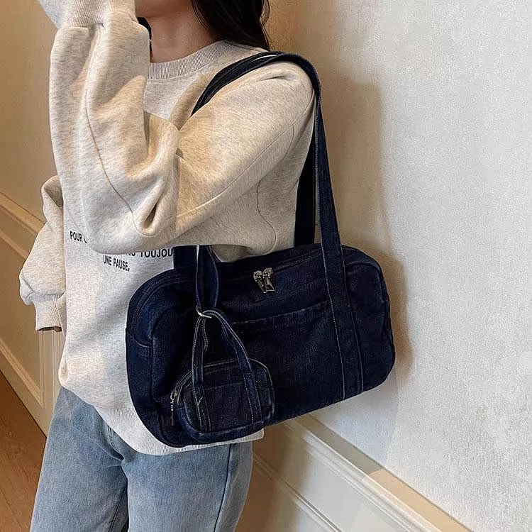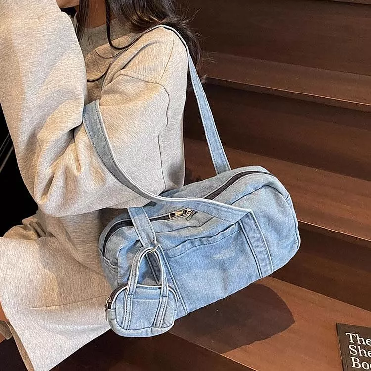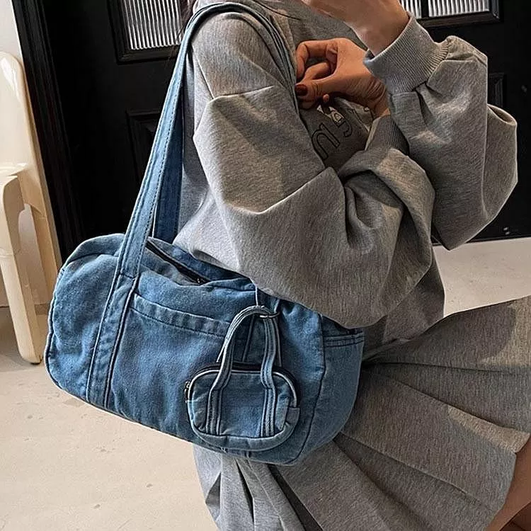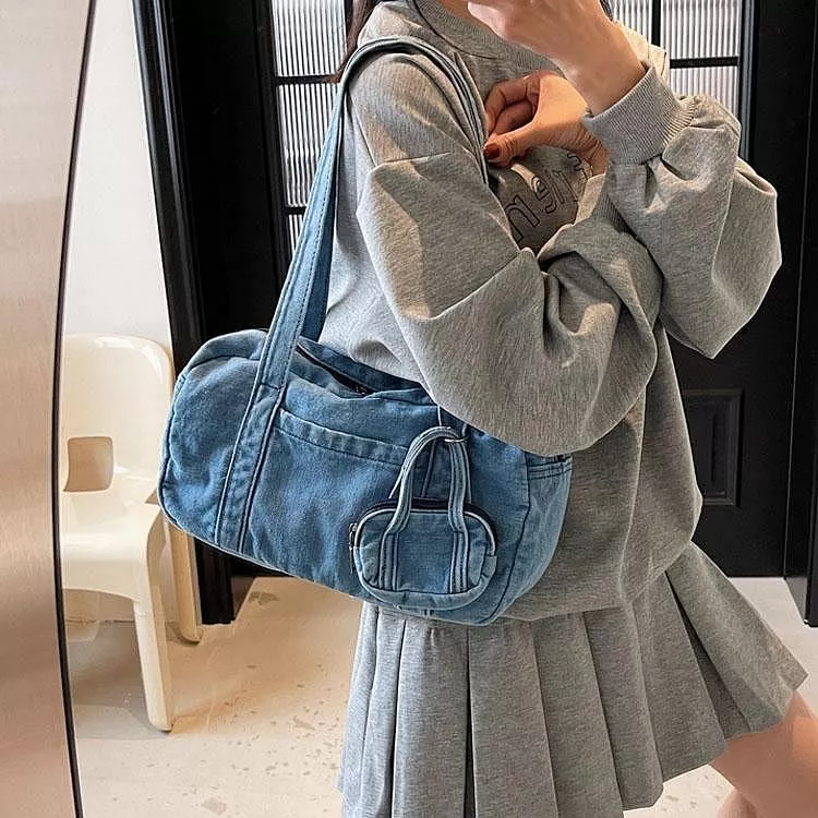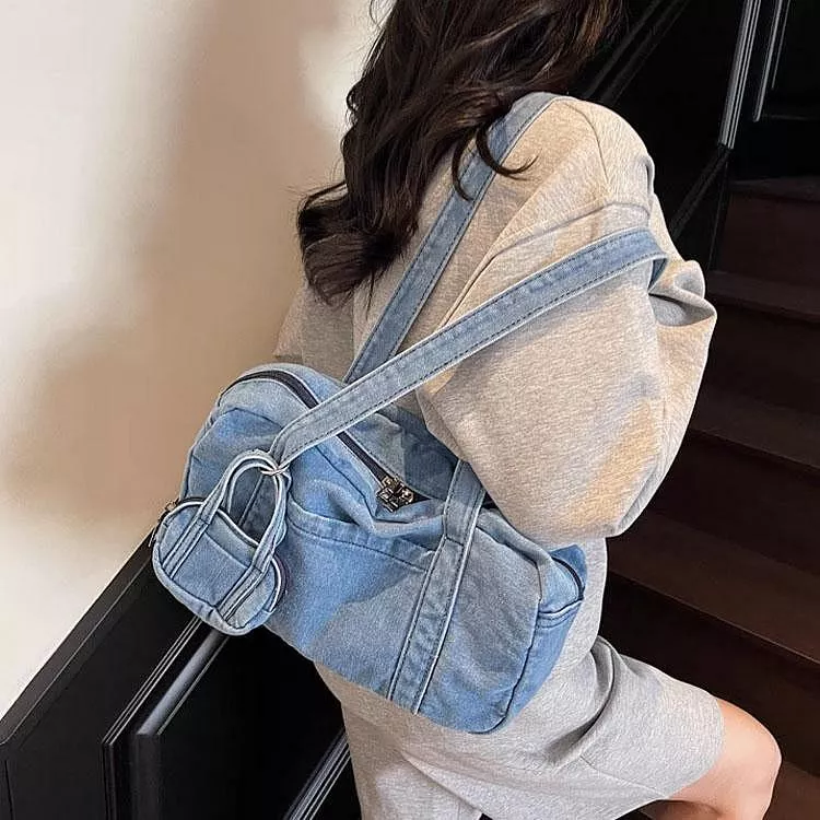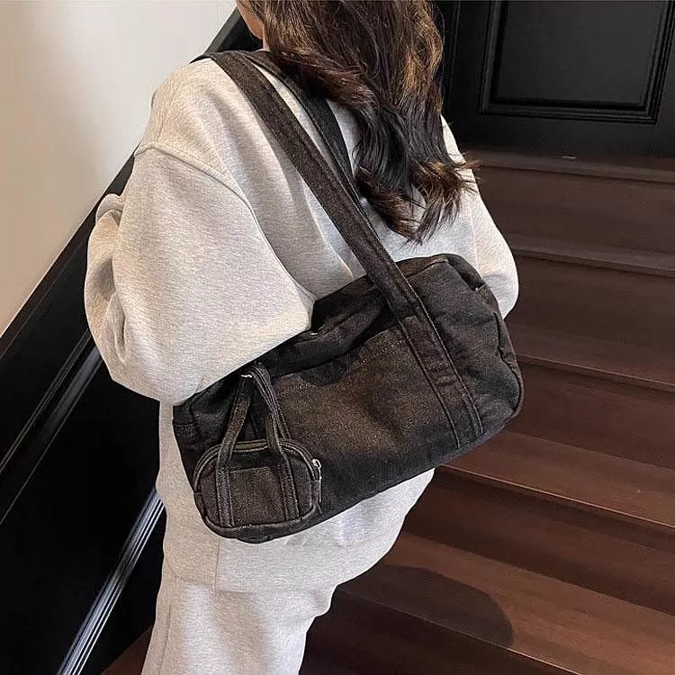 時尚牛仔布包手提包休閒單肩包腋下包