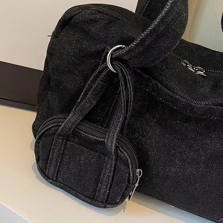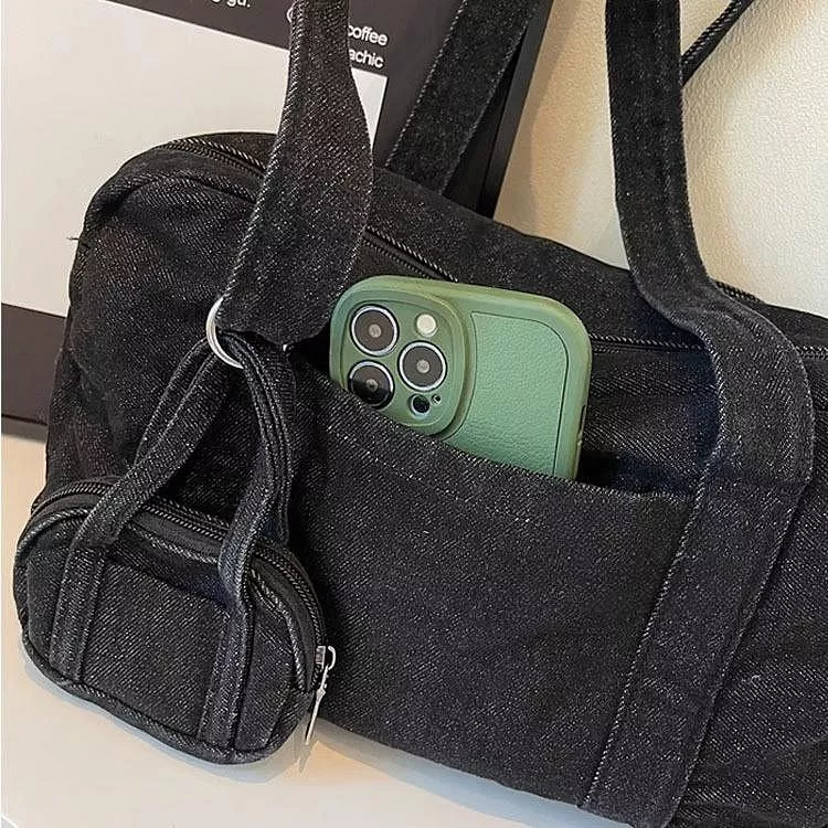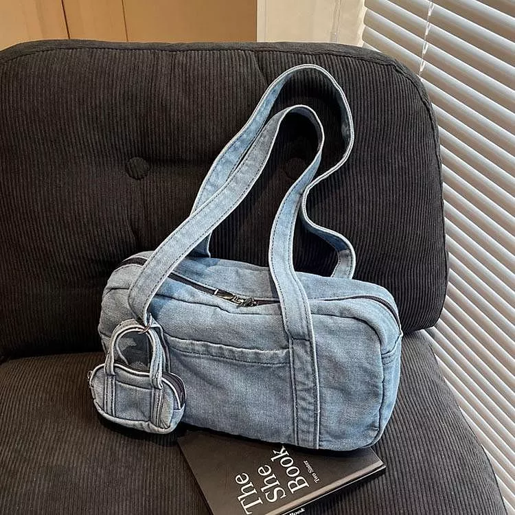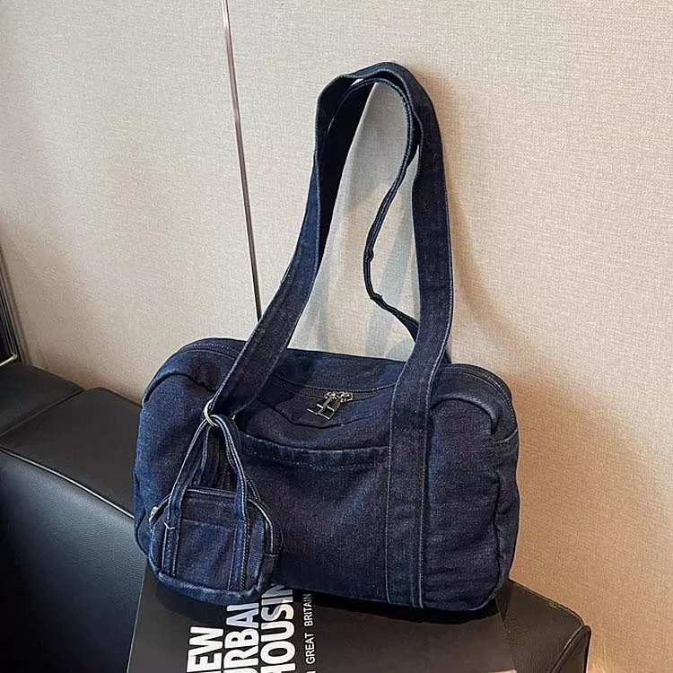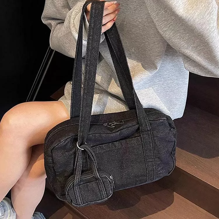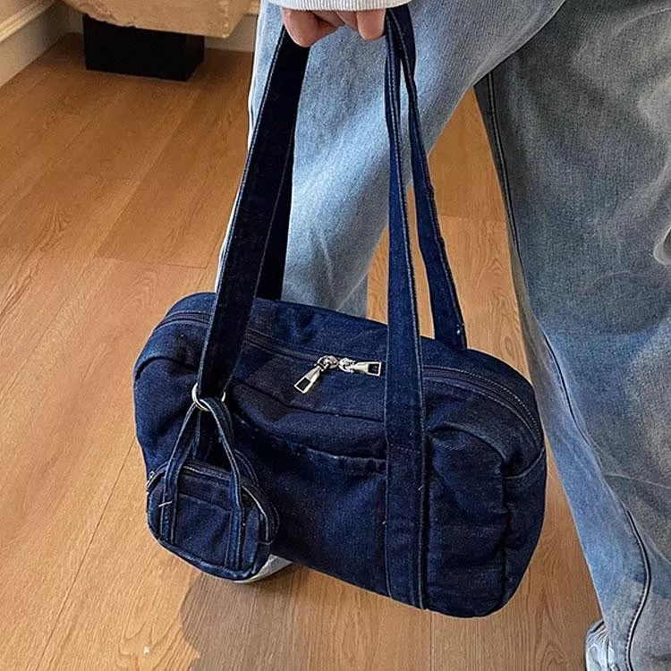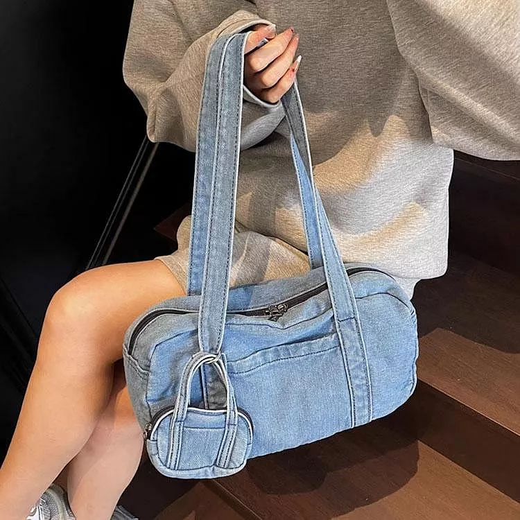 時尚牛仔布包手提包休閒單肩包腋下包
