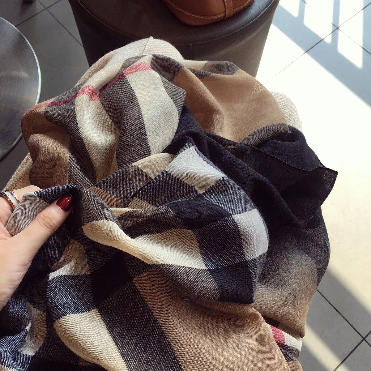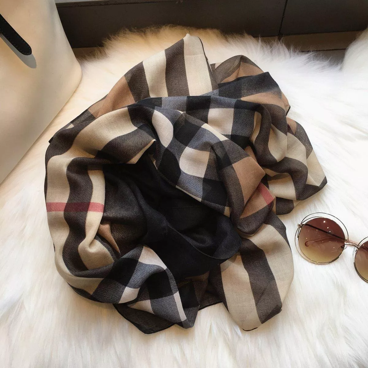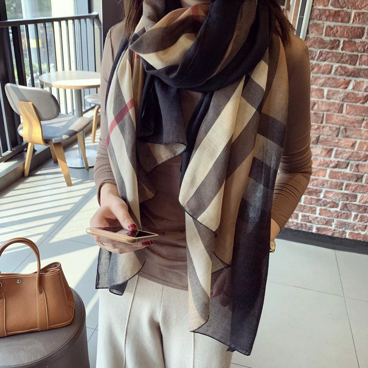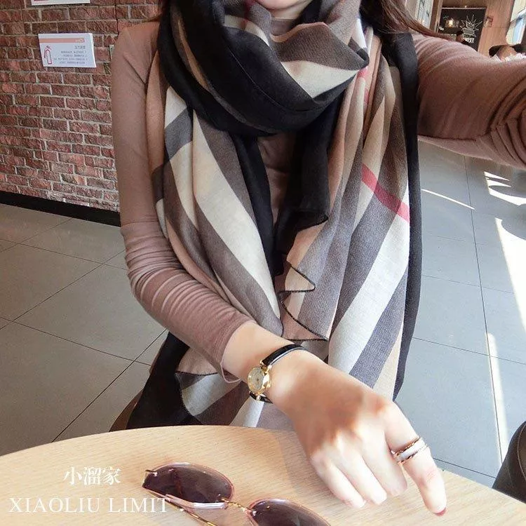 秋冬韓版百搭絲巾明星同款氣質格子棉麻圍巾披肩