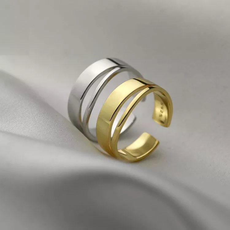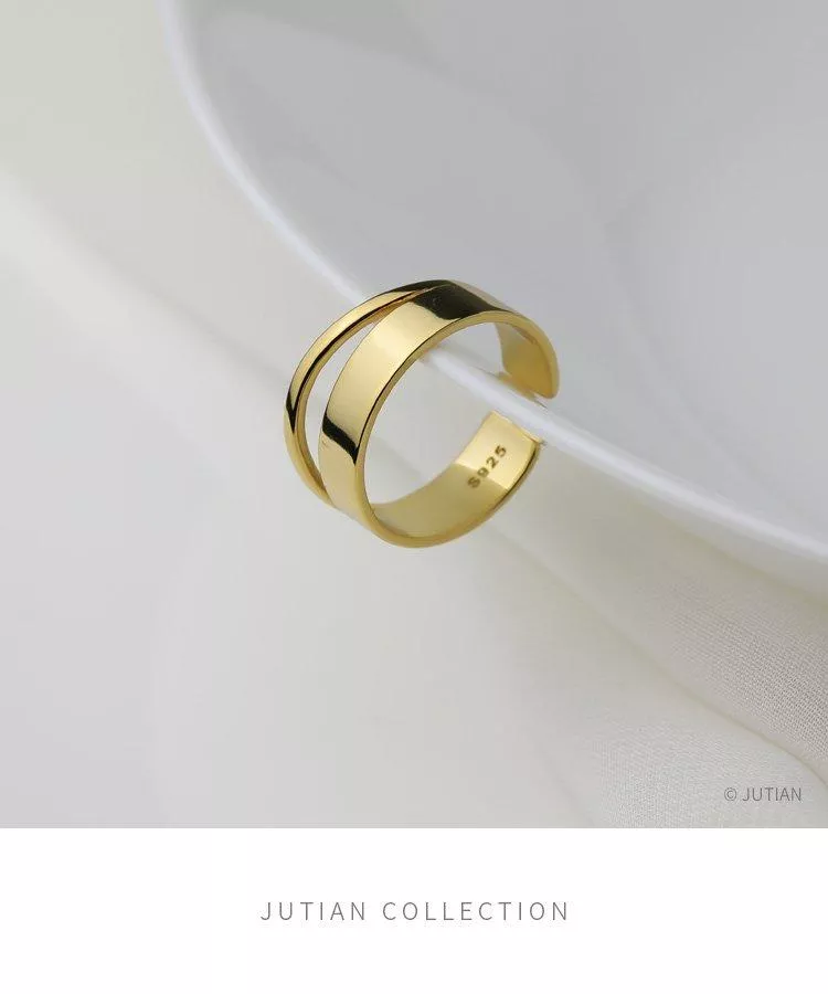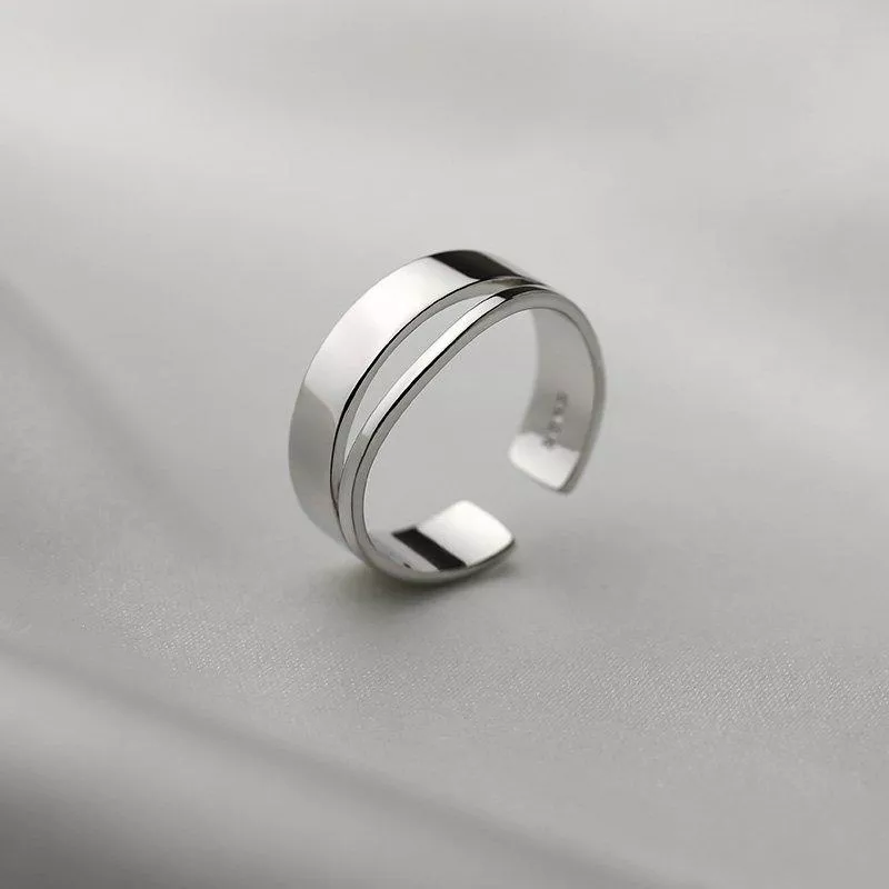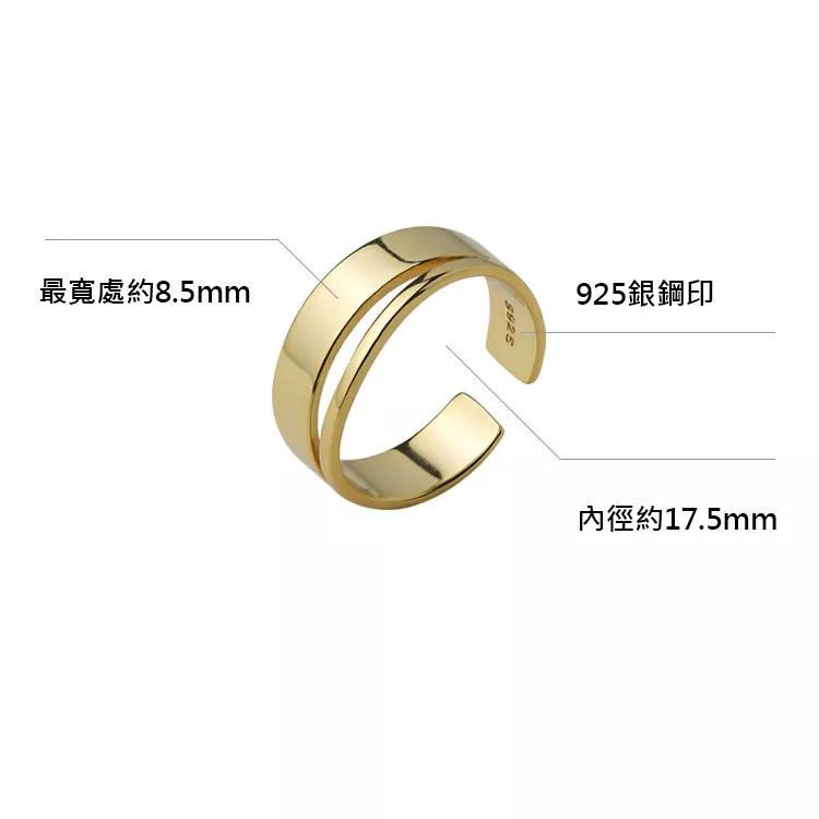 925純銀戒指設計款雙層光面個性開口式戒指