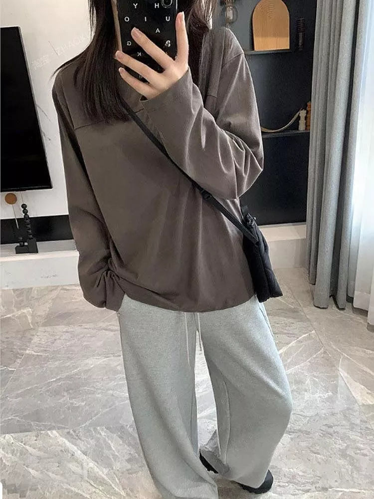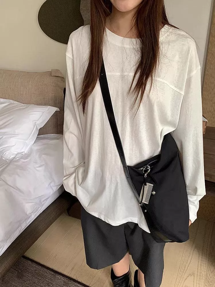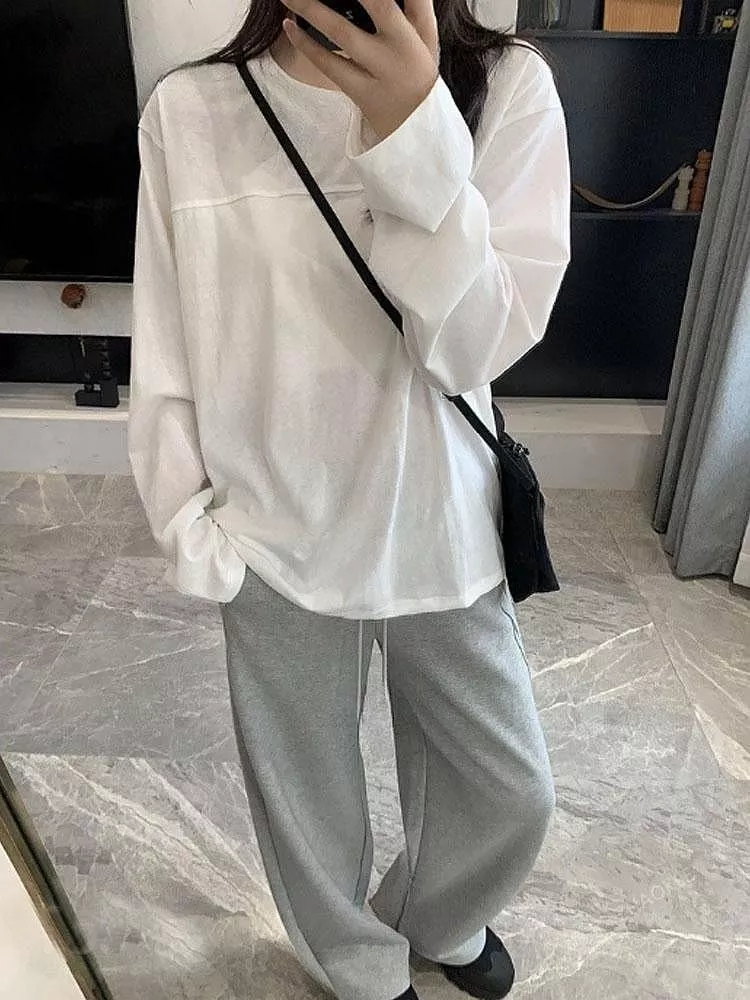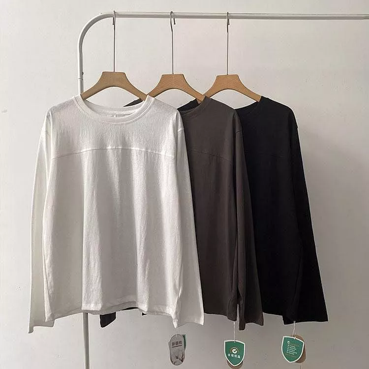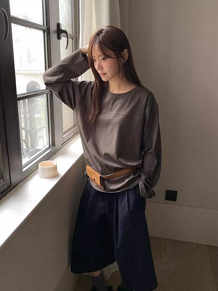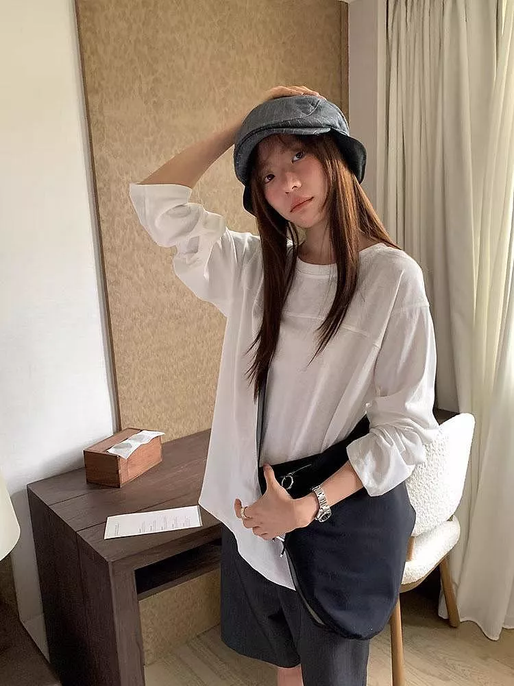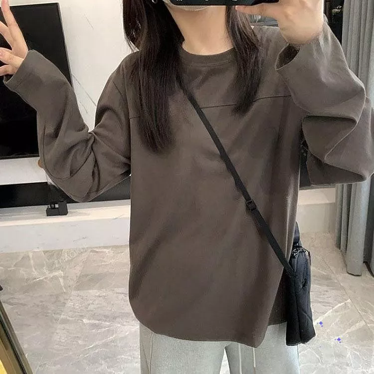 韓版雪花棉寬鬆百搭圓領長袖T恤休閒上衣