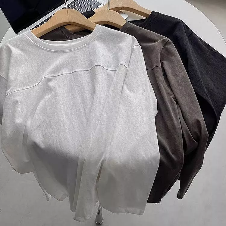 涼感桑蠶絲絲光棉t恤圓領v領短袖上衣