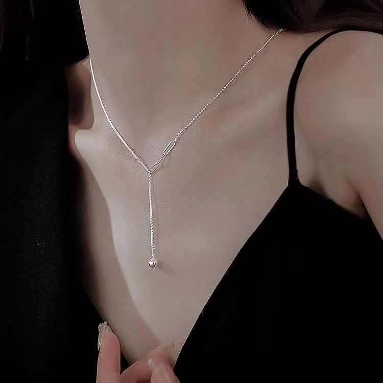 純銀珍珠項鏈毛衣項鍊氣質鎖骨鏈