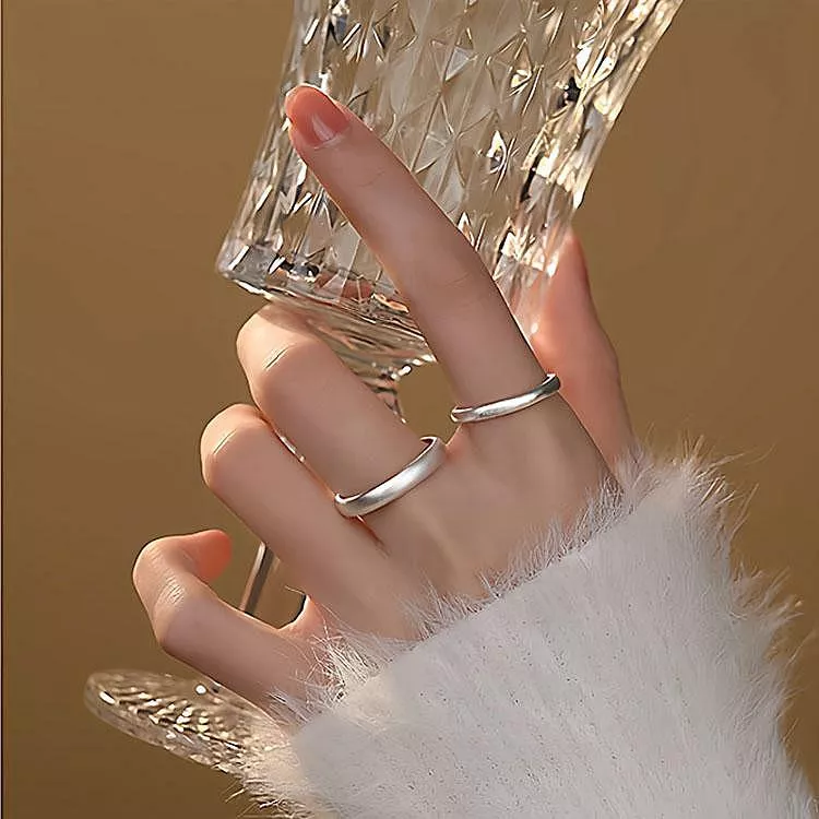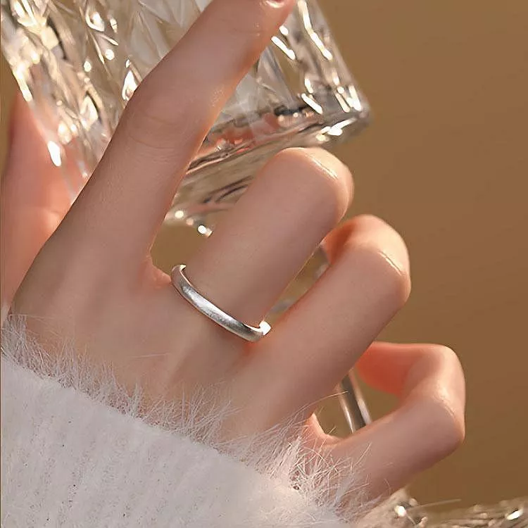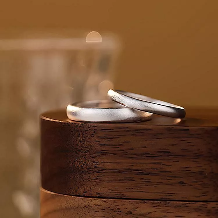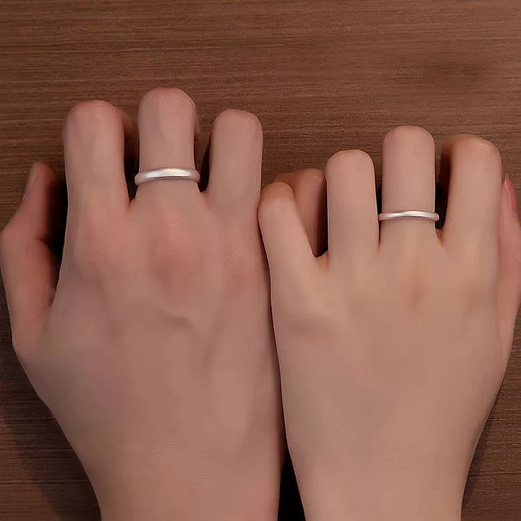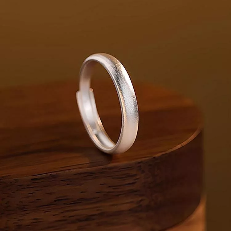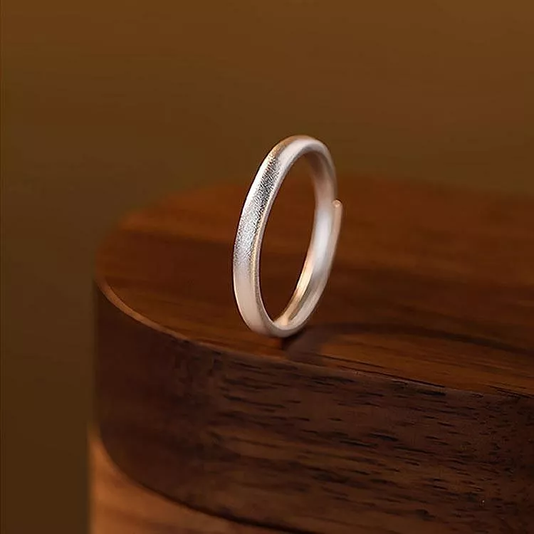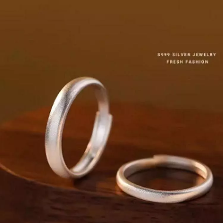 S999純銀開口磨砂戒指情侣對戒情人節禮物