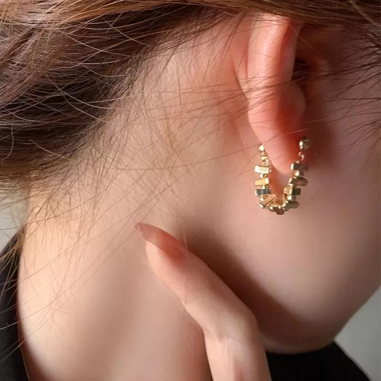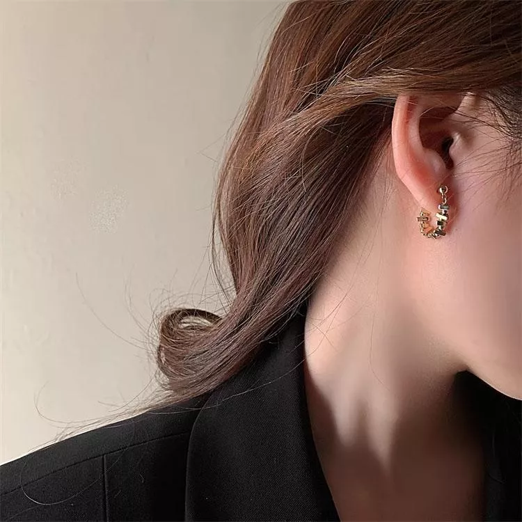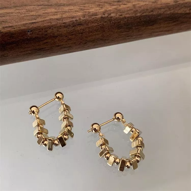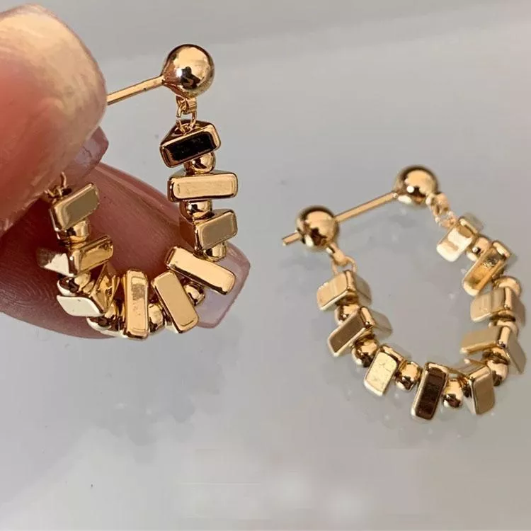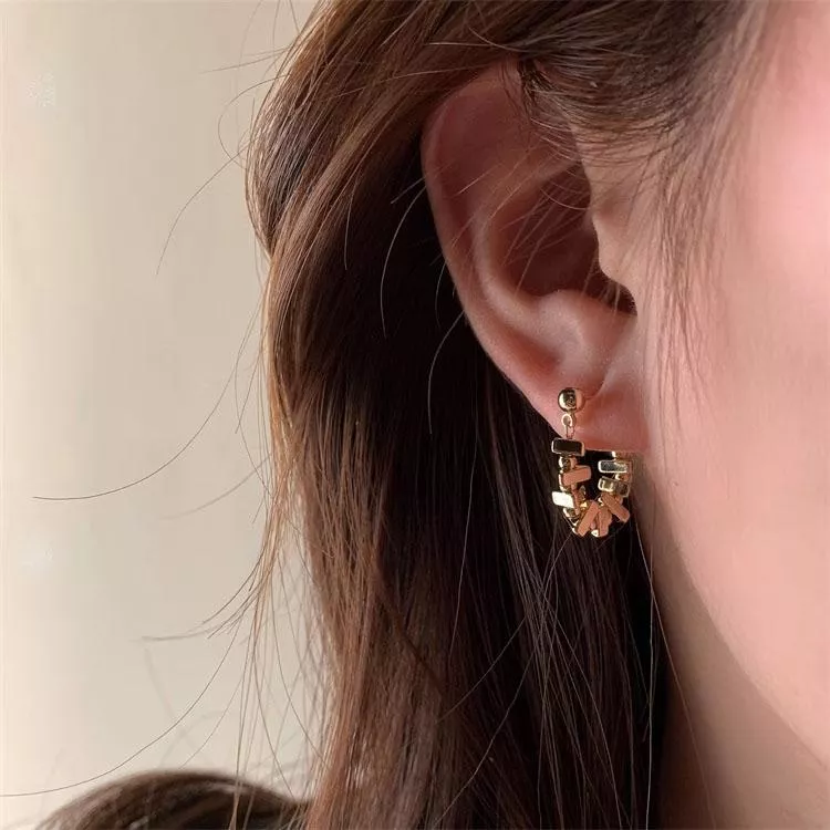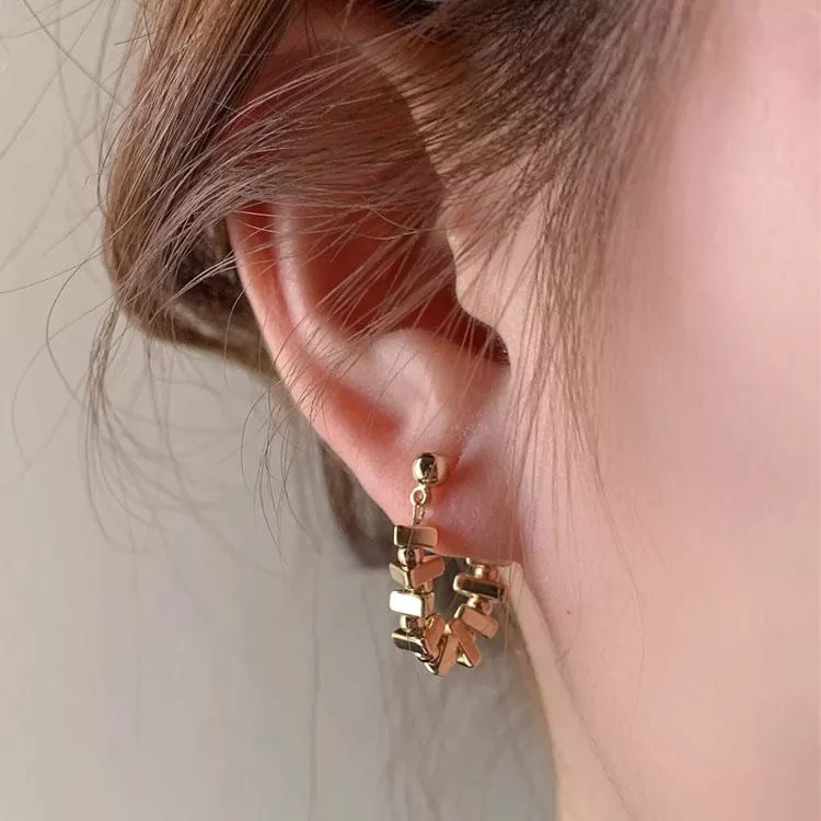 輕奢金屬方塊鏈條耳環